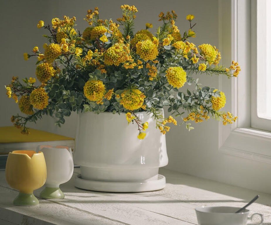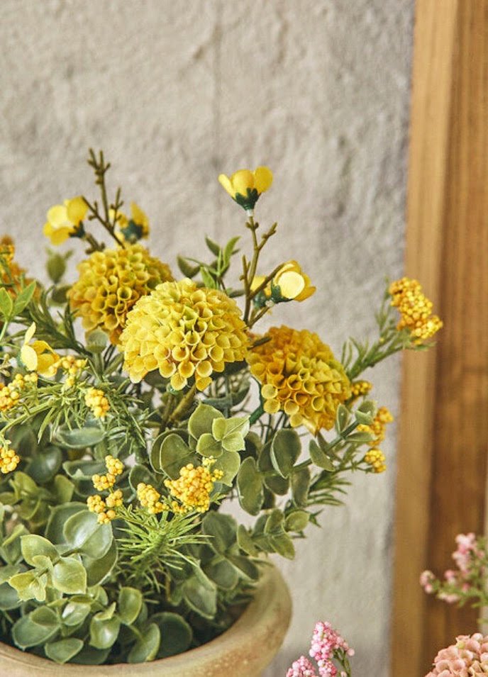 Su tonalidad amarilla aporta luminosidad y frescura, siendo una opción muy utilizada en proyectos de interiorismo en Huelva para crear ambientes acogedores y decoraciones florales con un estilo natural y elegante.