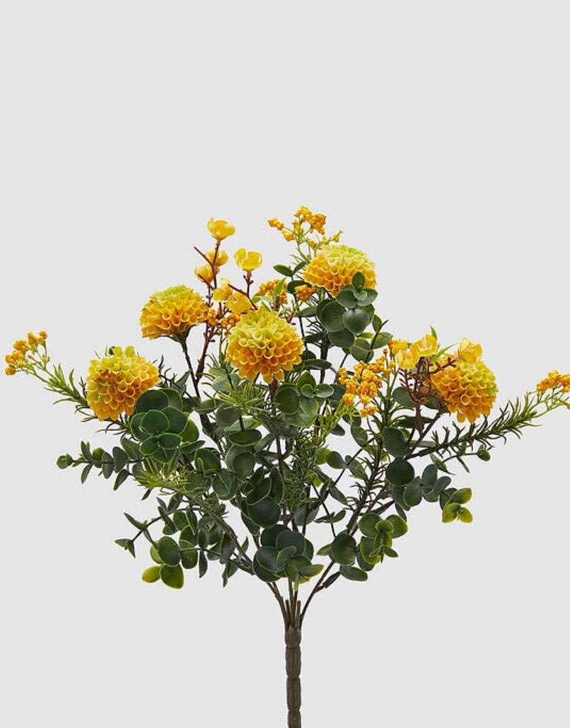 Bouquet de dalia amarilla artificial. Mide 37 cm de alto.