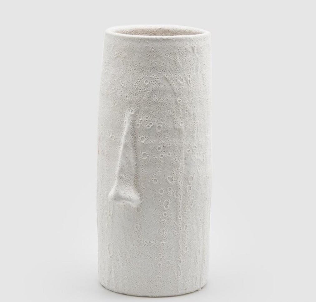 El jarrón de cerámica con nariz es una pieza decorativa original que aporta personalidad y estilo a cualquier espacio de interiorismo. Con una altura aproximada de 43 cm y un diámetro de 17 cm, su diseño escultórico lo convierte en un elemento decorativo llamativo y elegante.