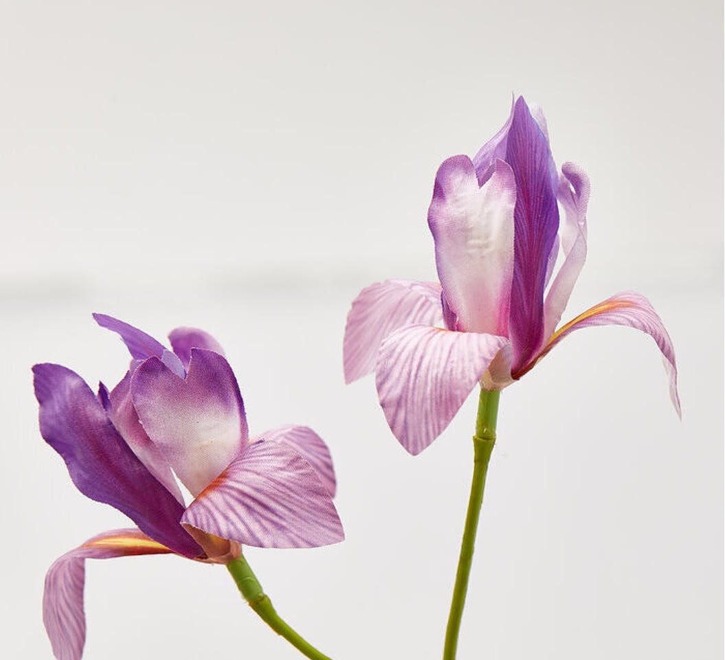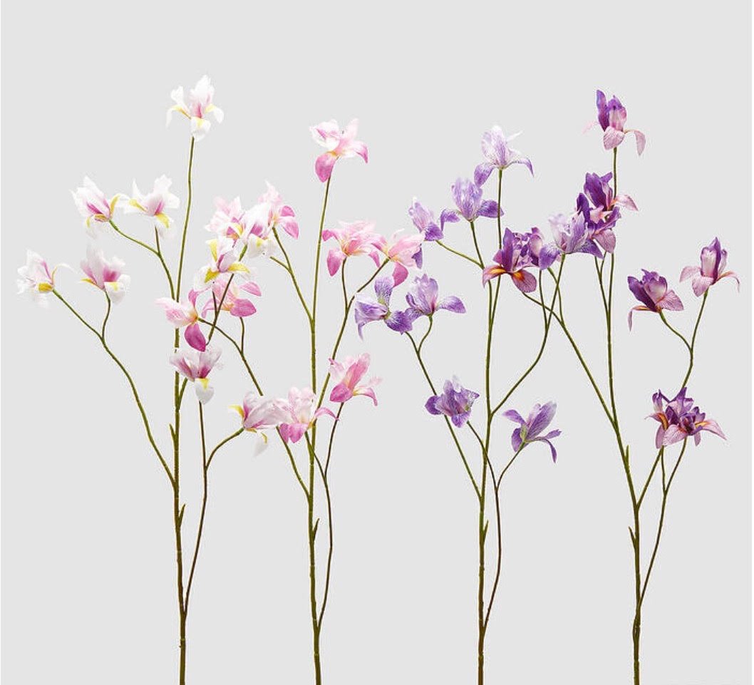 La rama decorativa de iris es un elemento floral ideal para aportar altura y elegancia a cualquier espacio de interiorismo. Con una altura aproximada de 108 cm, es perfecta para jarrones altos, arreglos florales o composiciones decorativas.