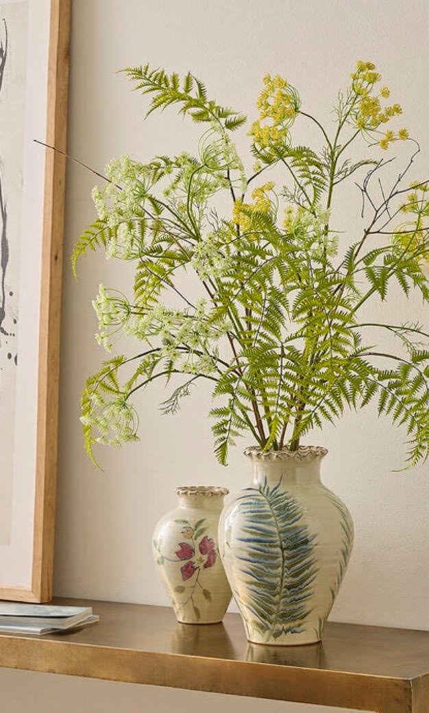 La rama decorativa felce es un elemento vegetal ideal para aportar un toque natural y elegante a cualquier espacio de interiorismo. Con una altura aproximada de 125 cm, es perfecta para jarrones altos, arreglos florales o composiciones decorativas.