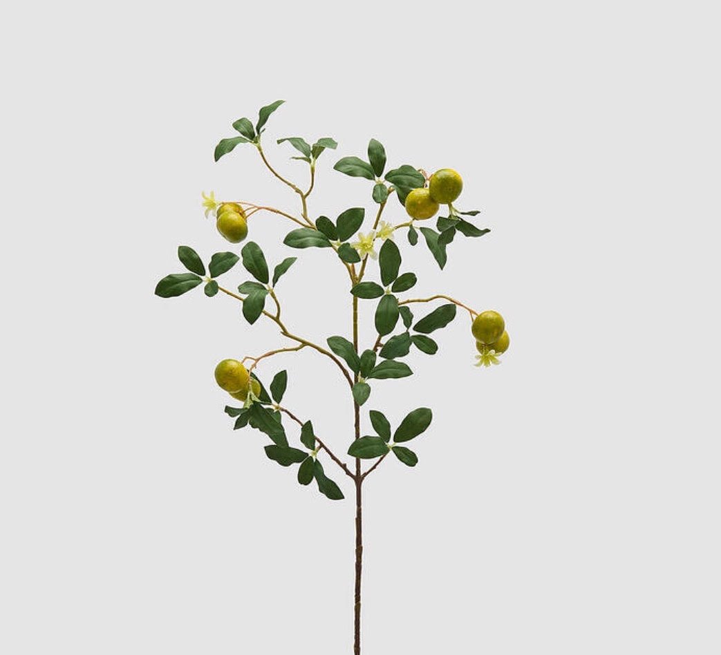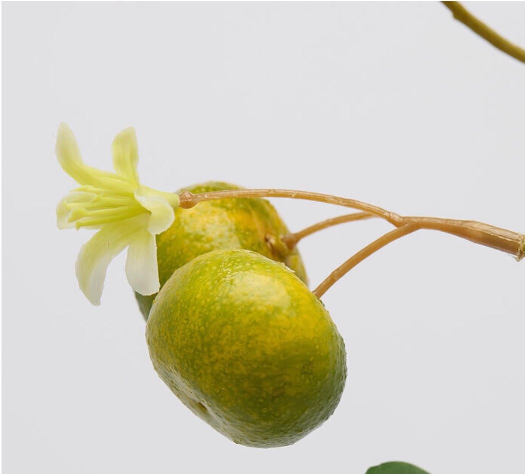La rama decorativa de mandarina con hojas es un elemento ideal para aportar un toque natural y fresco a cualquier espacio de interiorismo. Con una altura aproximada de 80 cm, es perfecta para composiciones florales, jarrones decorativos o arreglos vegetales.